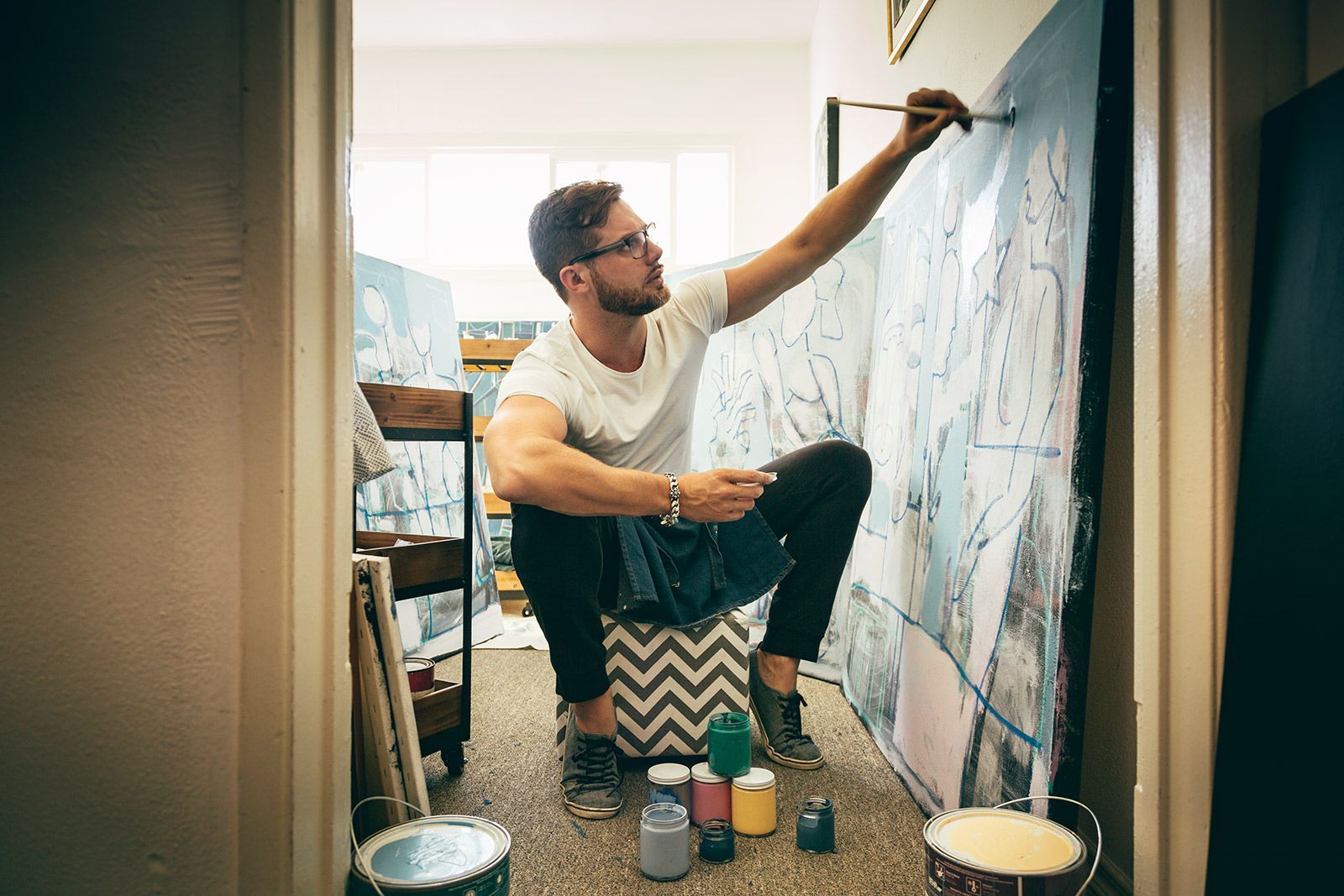 Russell Young Artist, Painter in his studio in Carpinteria CA