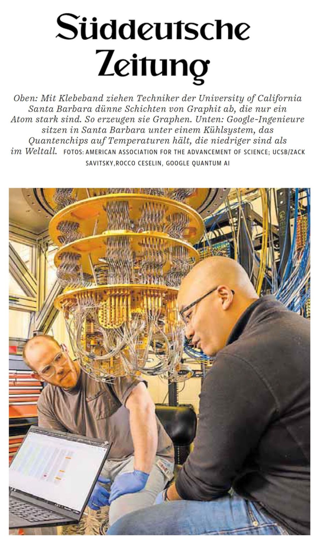 Süddeutsche Zeitung Newspaper featuring Google Quantum Computer