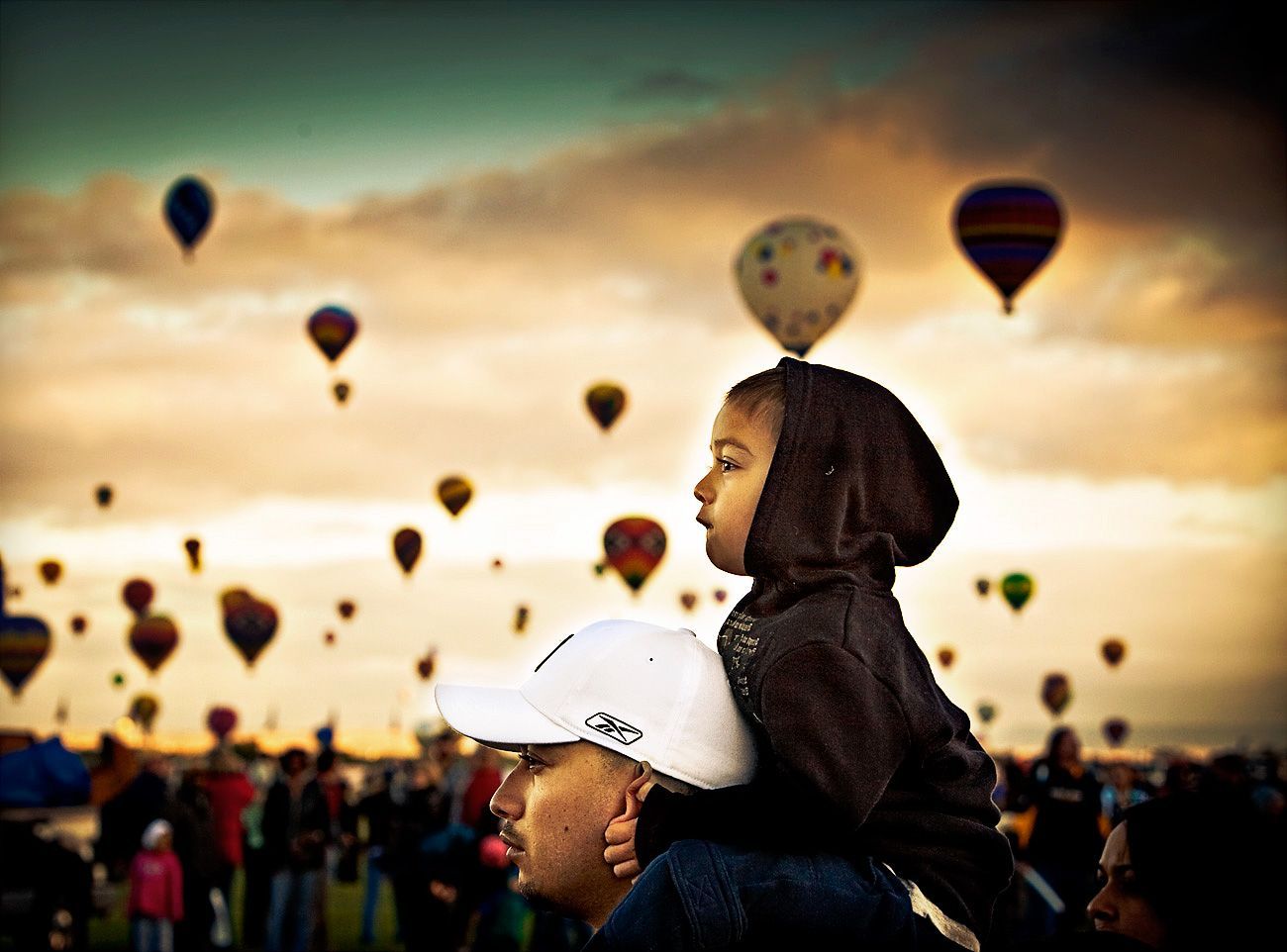 Father and son at the Albuquerque Balloon Fiesta during sunrise